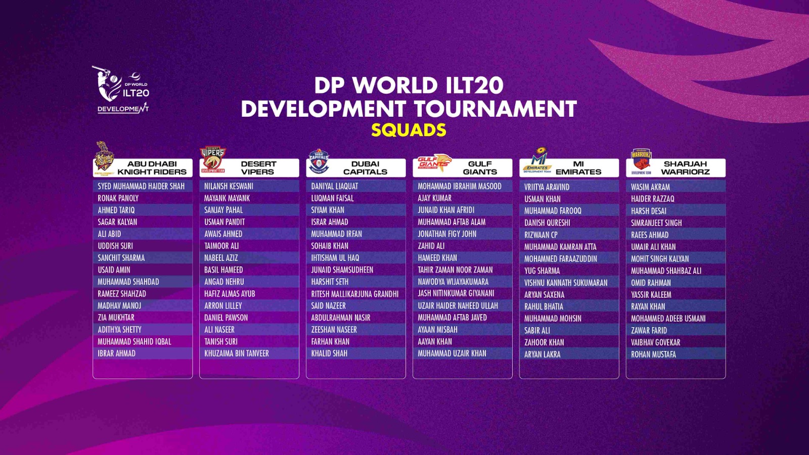 آئی ایل ٹی 20 ڈویلپمنٹ ٹورنامنٹ کیلئے 6فرنچائزز نے اسکواڈز فائنل کرلیے
